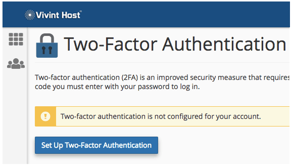 That’s why at Vivint Host, we always tell our customers: Turn on two-factor authentication (2FA) everywhere you can-especially for cPanel, WHM, and your Vivint Host account. It’s the best way to lock things down.
