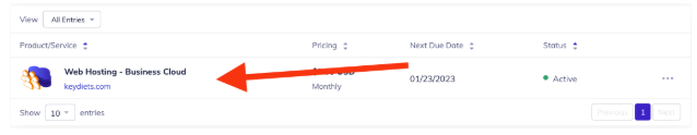 Once you're inside the dashboard, click on ‘My Services’ to view all your active products and hosting services.