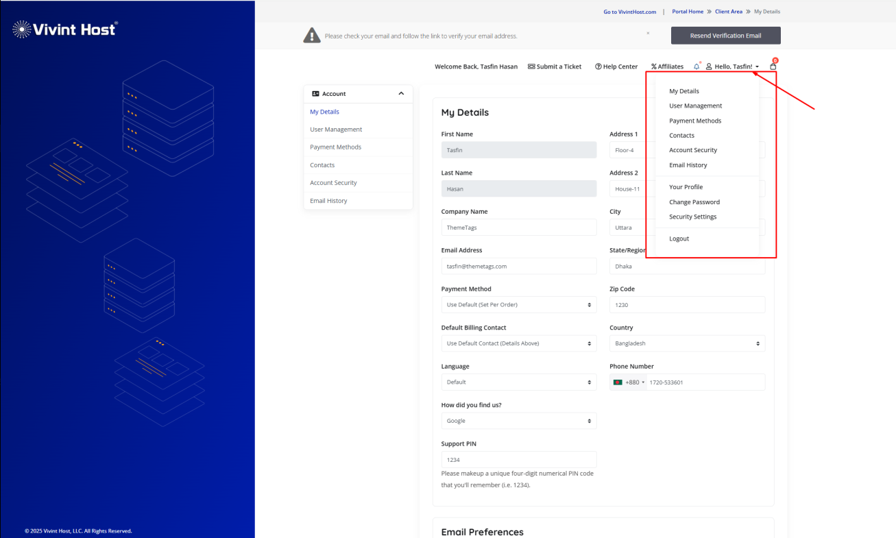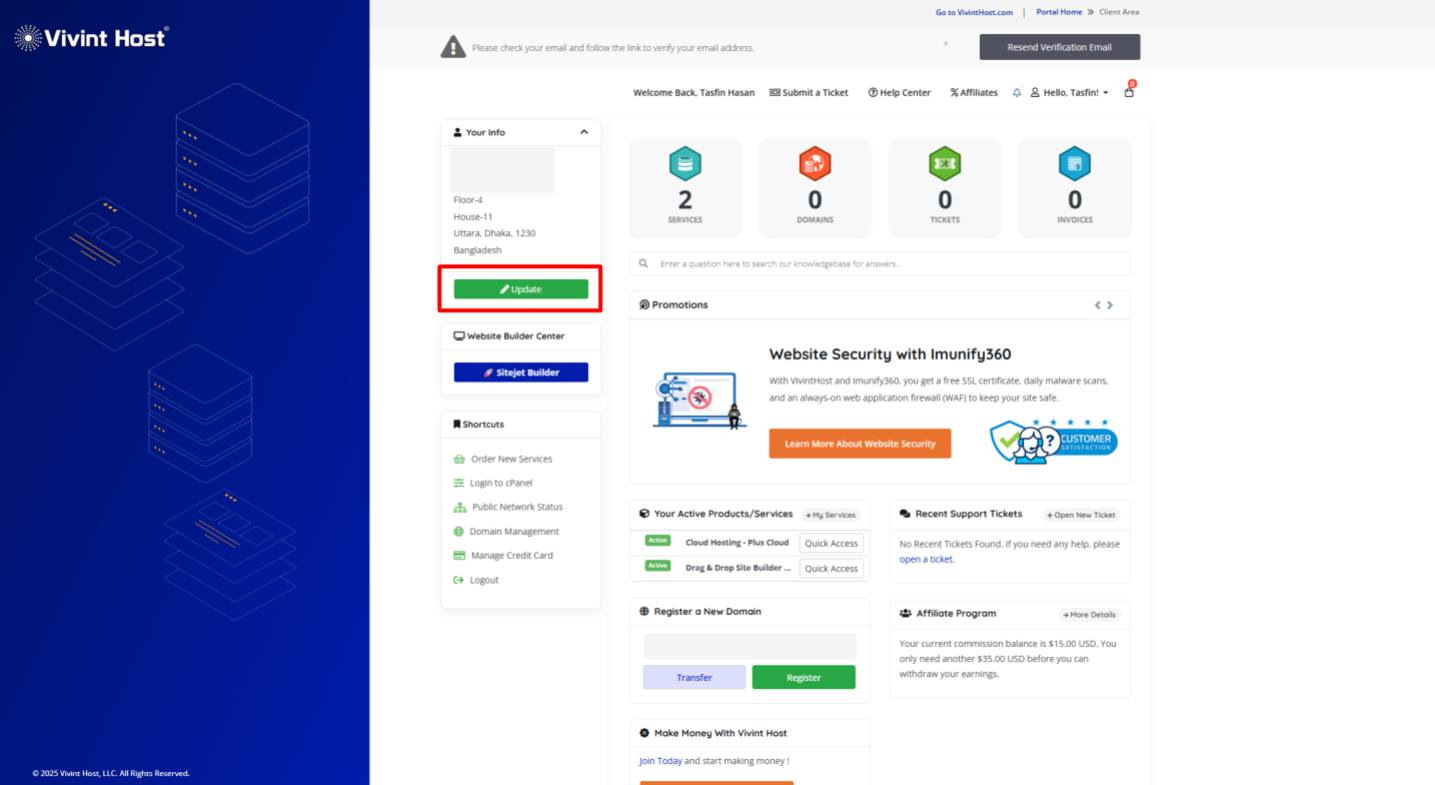 At Vivint Host, your account is the control center for everything-managing domains, cloud hosting services, support tickets, and invoices. Keeping your details up to date ensures smooth access and security.