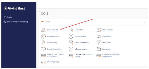 - Under the Email section, click Email Accounts.