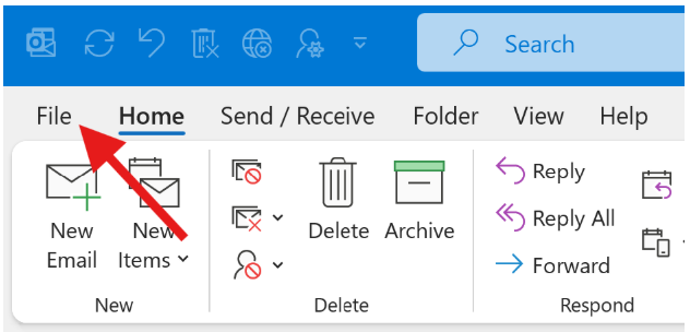 In the top menu, click File to open account-related settings.