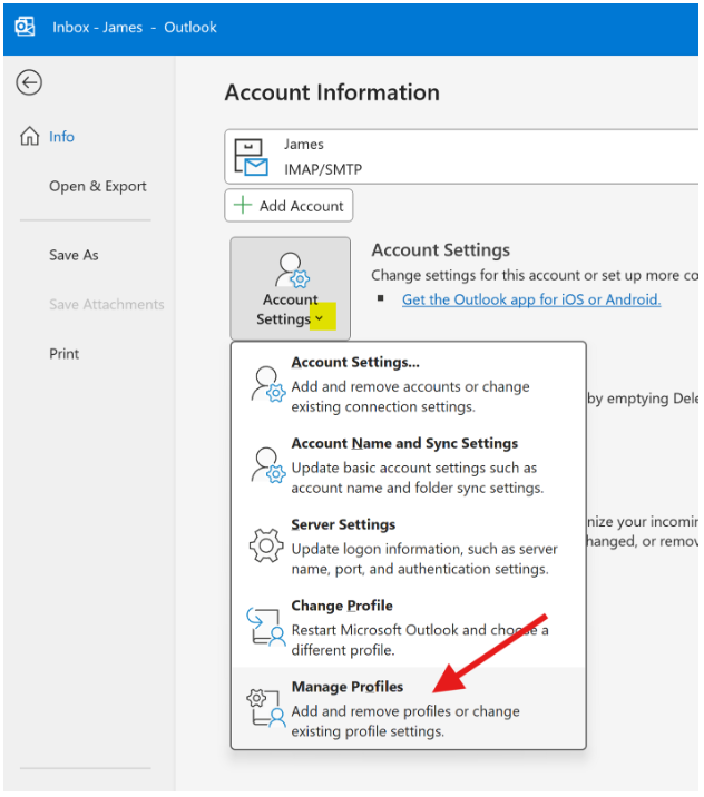 - From the dropdown, choose Manage Profiles.