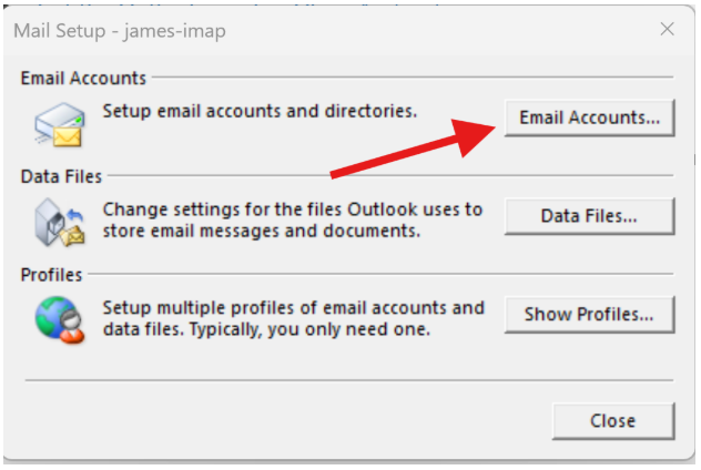 In the Profile window, click the Email Accounts button.