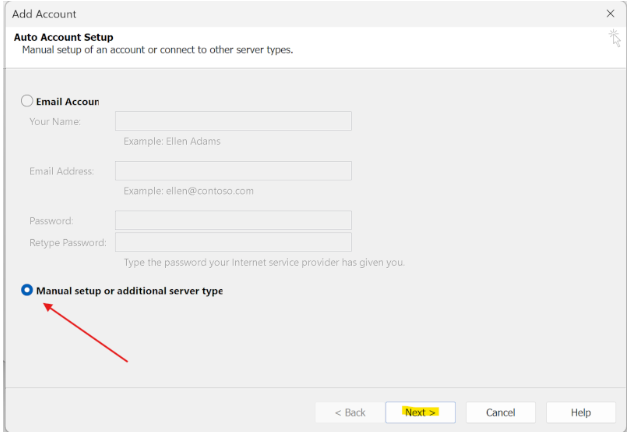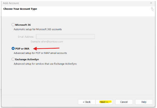 - Select POP or IMAP, then click Next again.