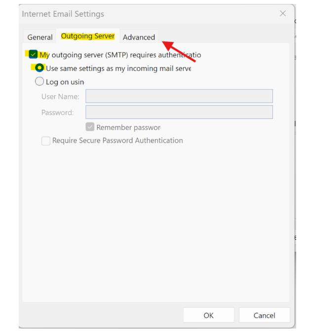 - Go to the Outgoing Server tab.