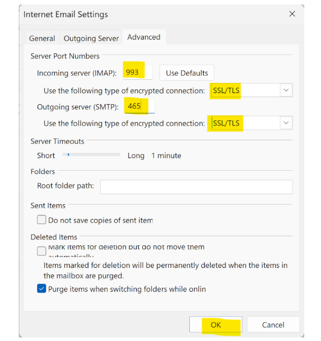- Outgoing Server (SMTP): Port 465 or 587 with SSL/TLS