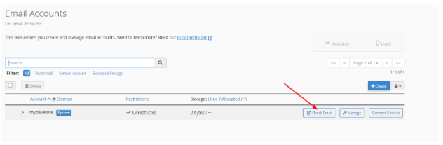 Locate your email address: Find the email account you want to access, then click on the Check Email button next to it.