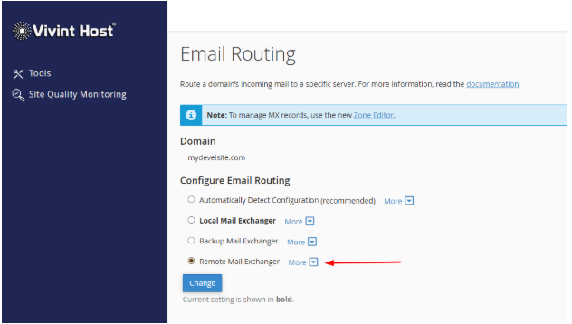 Before changing your domain’s email records, you need to let cPanel know that your emails will be handled outside of Vivint Host.