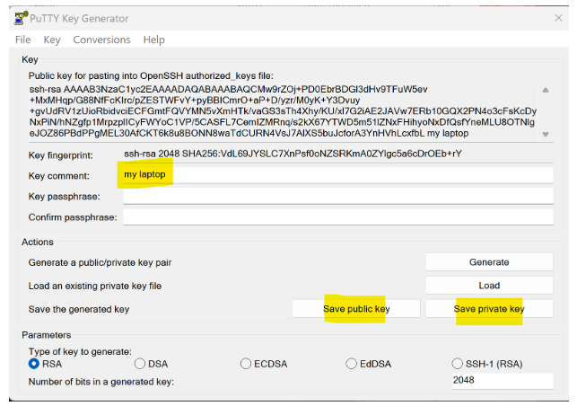 - Add a Key comment to identify this key (e.g., MyLaptop).