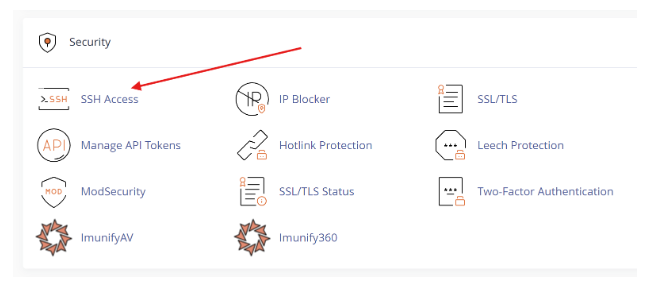Once you’re inside cPanel, scroll or search for the SSH Access icon. Click on it to proceed.