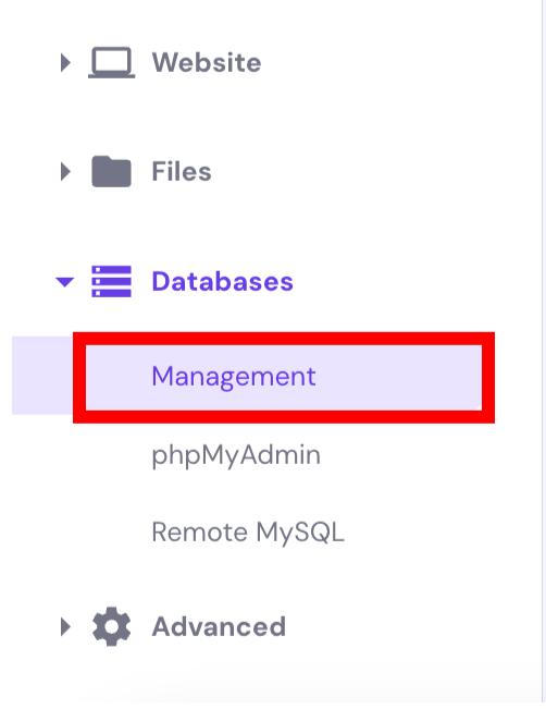 - Database Management: In the left sidebar, look for Databases and select Management.
