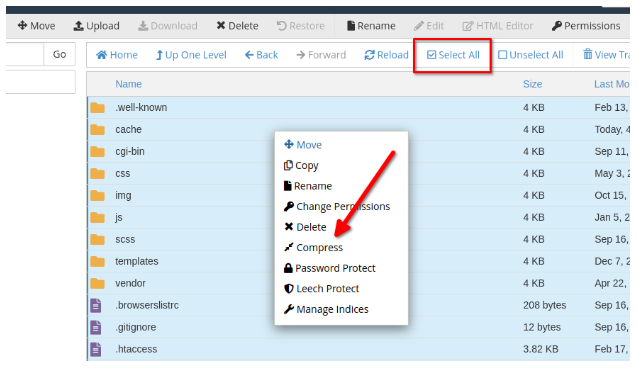 - Inside your website’s folder, click "Select All" (top checkbox).
