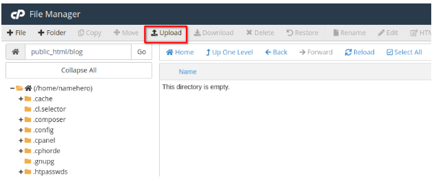 - Once uploaded, refresh the File Manager (click "Reload").