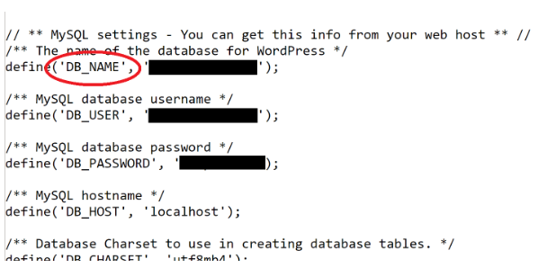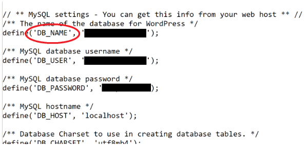 - define('DB_NAME', 'your_database_name');