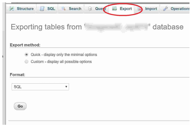 - Leave settings as default and click "Go" to download the .sql file.