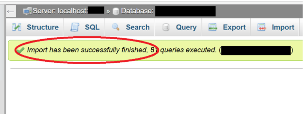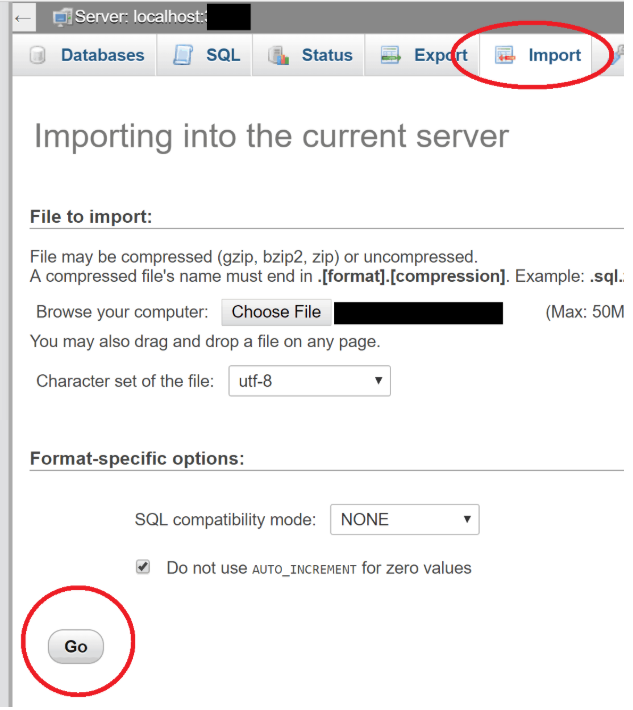 - Upload the .sql file you exported earlier.
